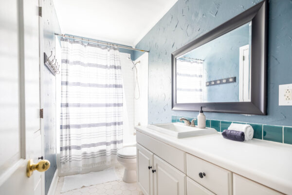 The living room features a large flatscreen as well as queen-size sleeper sofa. The home's 3 bedrooms large and bright with an abundance of closet space. There is also a back deck with a seating area for taking in the well-mantained backyard which borders a tranquil neighborhood park. We think you'd love it!